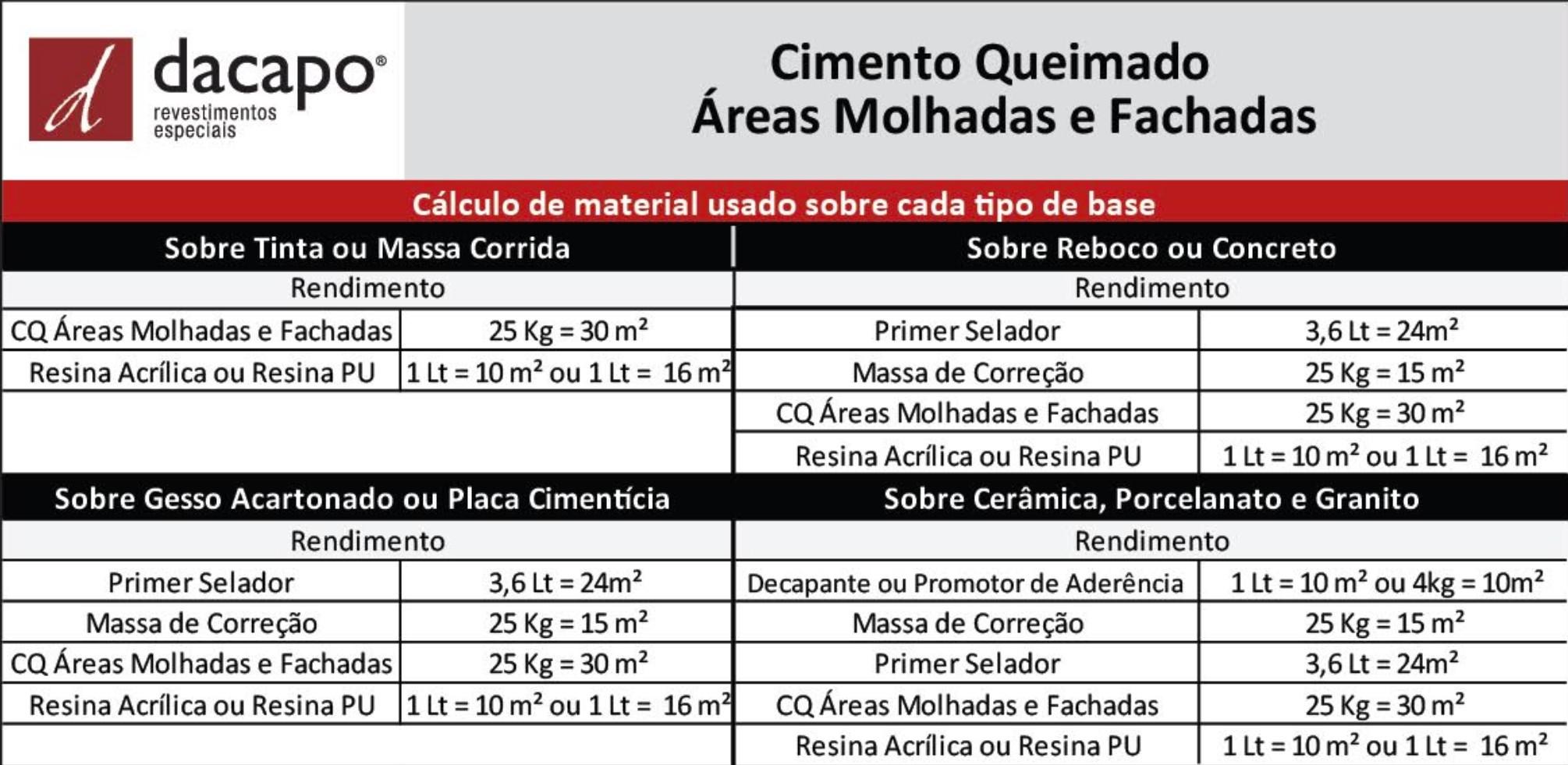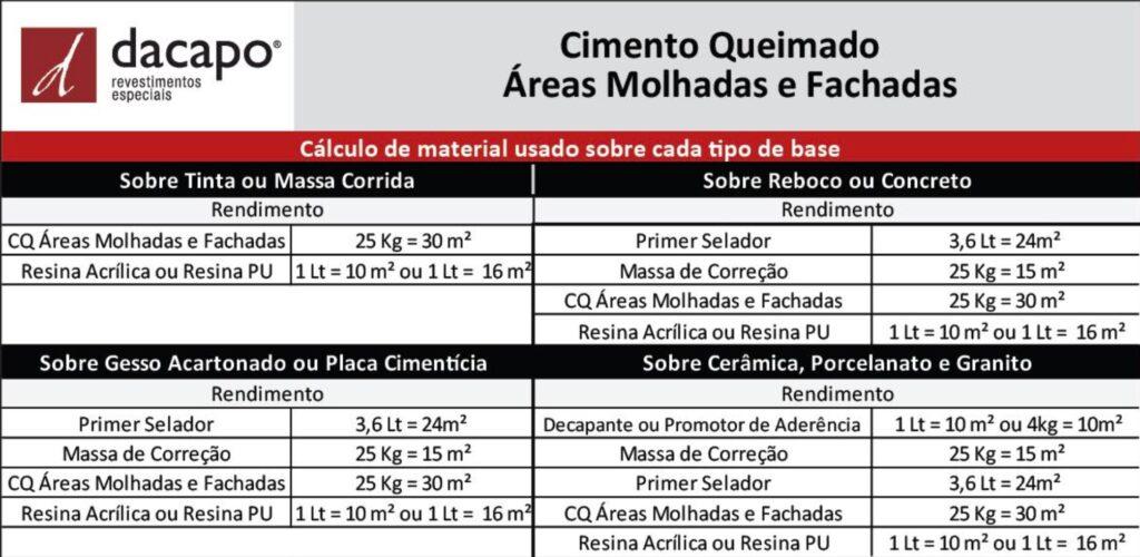 O Cimento Queimado Pronto Áreas Molhadas e Fachadas é um material de composição mineral à base de emulsão acrílica, usada para acabamento de CIMENTO QUEIMADO.