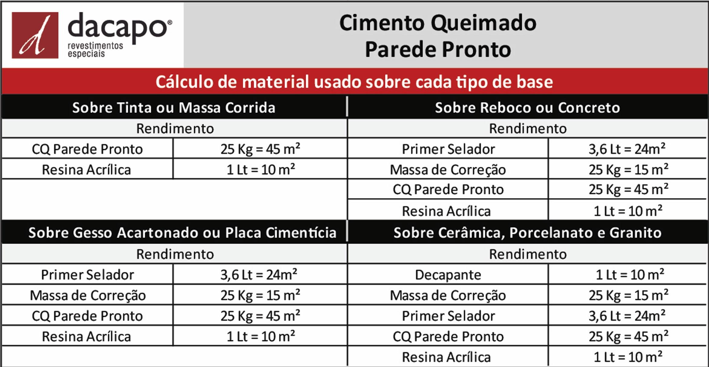 É um material de composição mineral à base de emulsão acrílica, usada para acabamento de CIMENTO QUEIMADO.